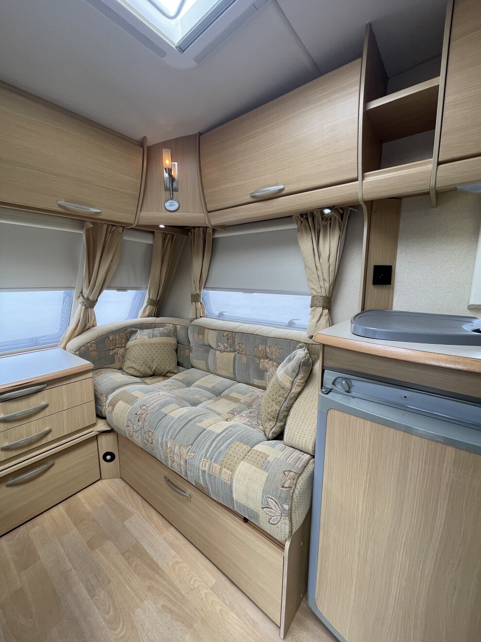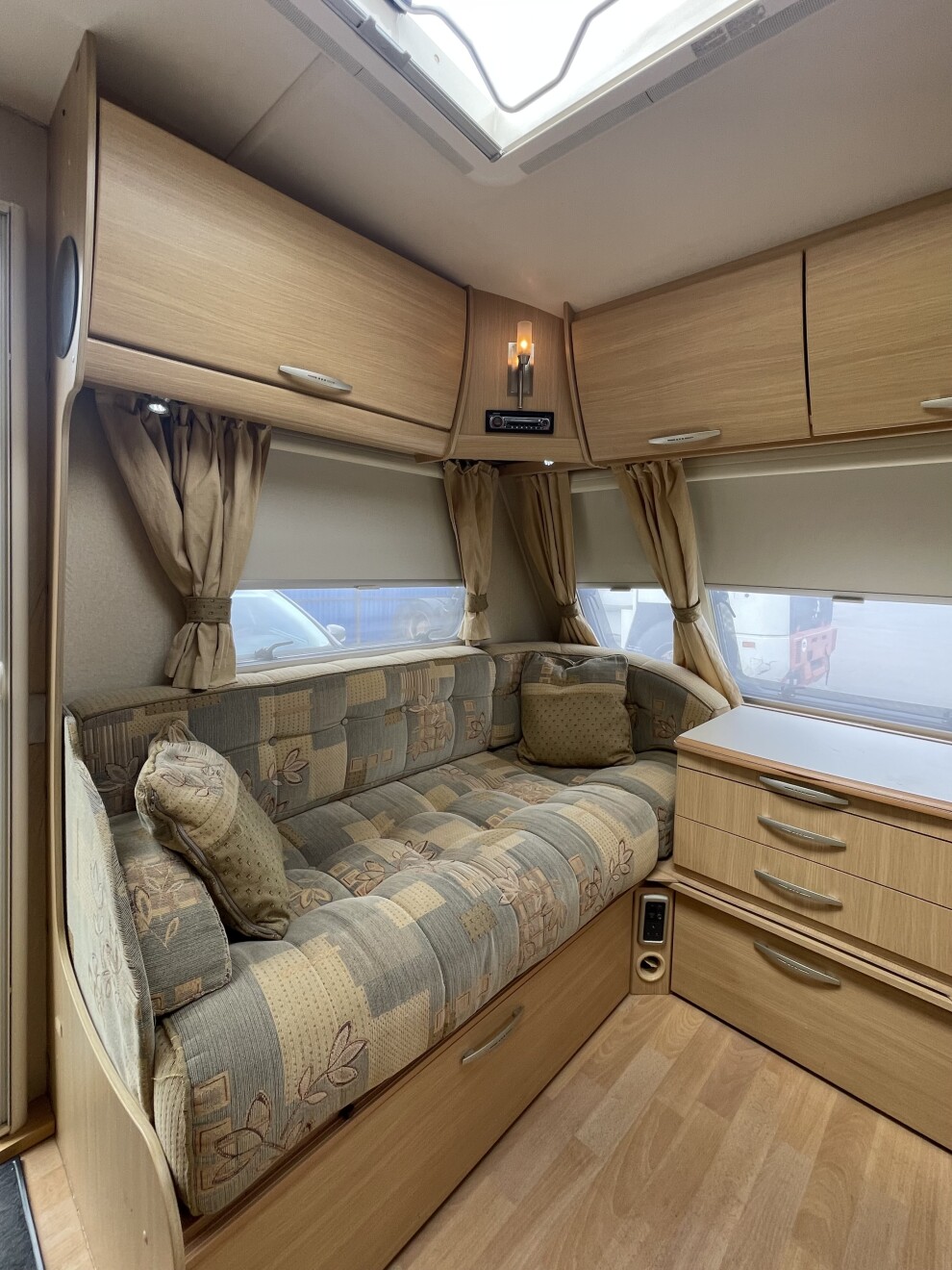 Оснащение Каравана позволяет свободно путешествовать и быть независимым в путешествии и находиться не только на территории кемпинга с доступом к электричеству. При покупке все устройства проходят повторную проверку, и покупатель уверен, что Караван находится в рабочем состоянии и в то же время есть возможность ознакомиться с инструкцией к индивидуальному оборудованию. Предложение, которое заслуживает внимания прежде всего благодаря уникальному, привлекательному и ухоженному интерьеру и соответствующему оборудованию!