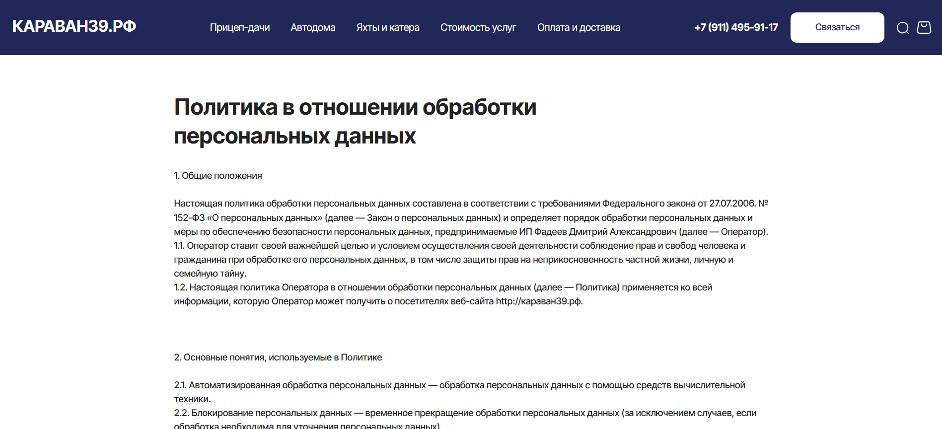 Настоящая политика обработки персональных данных составлена в соответствии с требованиями Федерального закона от 27.07.2006. № 152-ФЗ «О персональных данных» (далее — Закон о персональных данных) и определяет порядок обработки персональных данных и меры по обеспечению безопасности персональных данных, предпринимаемые ИП Фадеев Дмитрий Александрович (далее — Оператор).